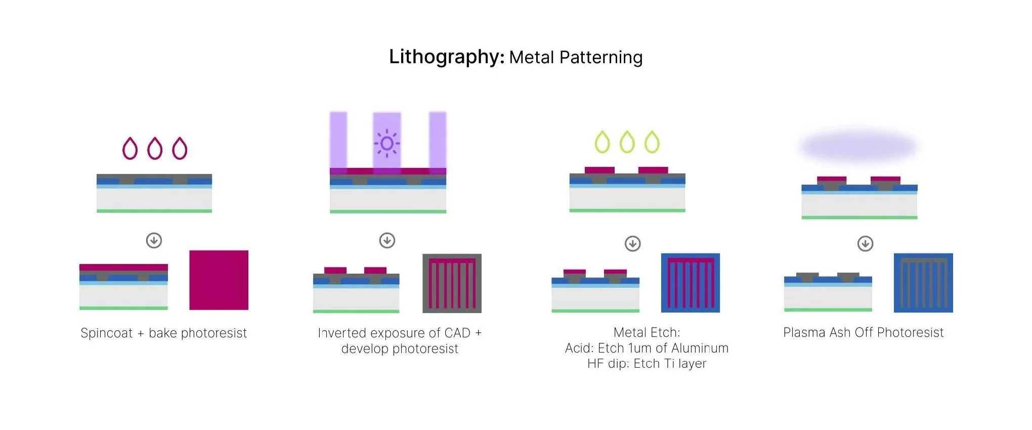 Final Si Wafer Exposed/Developed/Etched Designs.