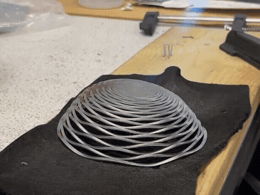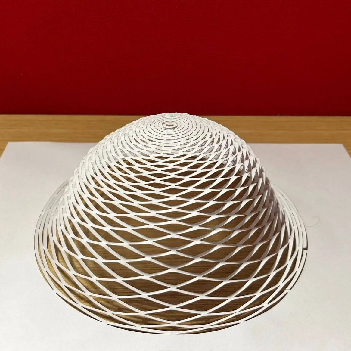 I created the designs through Grasshopper in Rhino, allowing me to easily change parameters and generate new variations. With the many materials I prototyped with (paper, card, stainless steel, aluminum and nitinol) I focused on the main attributes that change the ease of deploying the structures (i.e, the pressure required to deform into a dome). Three attributes control this factor: number of rings, the number of divisions of each ring, and the length of each arc division.