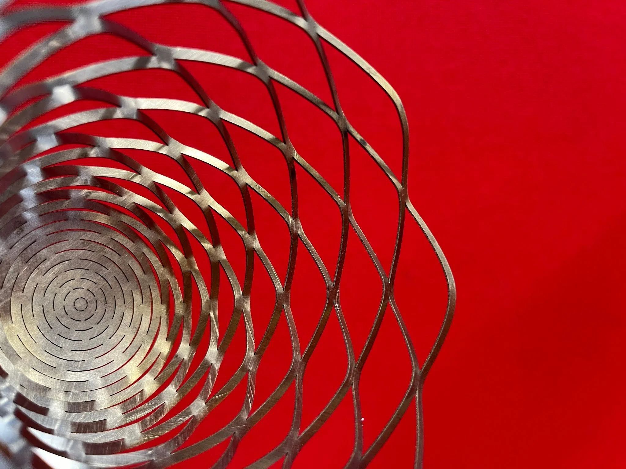 Given the superelasticity of nitinol, and the thickness of the sheet provided, the nitinol design was chosen to have high ring number, low division number and high arc length. This makes each “segment” of the dome thin and long, and consequently easy to deform.